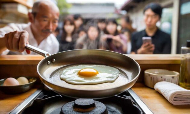 The pan was already smoking when the Japanese chef quietly slid it off the flame. No butter, no gleaming swirl