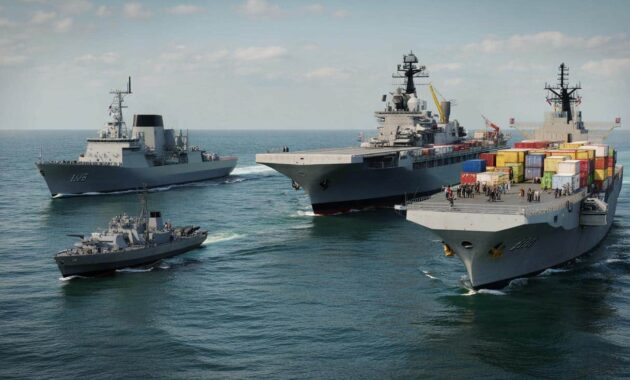 The UK government is weighing up an unusual fix for a stretched Royal Navy: hiring commercial cargo ships to keep