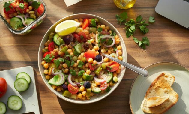 Think of a Tuesday lunch where you’ve got ten minutes between meetings. No time to cook, no energy to think. You grab that container from the fridge, pop the lid, and suddenly there’s this bright, Mediterranean thing going on. The chickpeas have soaked up the lemon and olive oil overnight, the tomatoes have gone a little jammy, the onion mellowed out.