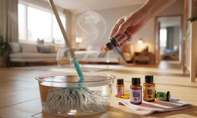 There’s this tiny gesture that people who love good smells often do, quietly, in their cleaning routine. No viral gadget. No magic appliance. Just **two drops of essential oil** directly into the mop bucket, once the hot water and floor cleaner are in.