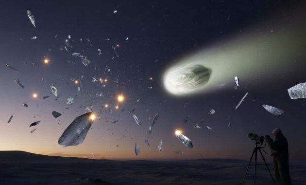 Astronomers are now tracking a comet releasing crystalline fragments that behave like artificial satellites