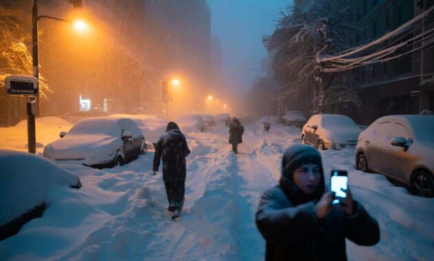 The first sign that tonight wouldn’t be normal wasn’t the snow itself. It was the silence. Around 5 p.m., the city soundscape simply… dimmed. Traffic thinned. The sky pressed lower, a flat lid of steel, and the snow that had been gentle all afternoon suddenly thickened into heavy, slanting sheets. Streetlights flicked on early, halos of orange swallowed by a swirling white wall. Neighbors stepped outside and just stood there, phones in hand, filming the way the world disappeared halfway down the block. You could actually hear the snow piling up on parked cars, soft thuds as branches shrugged under the weight. Then the alert hit: heavy snowfall, now officially declared a major threat for tonight. Not a poetic phrase, but a cold administrative judgment. And forecasters adding one more sentence that changed everything. The situation may deteriorate rapidly.