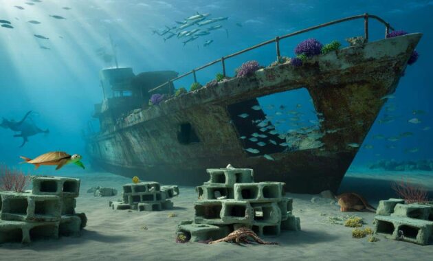 On paper, the method is almost disarmingly simple. First, find the “ghost spaces” at sea: barren seafloors where natural reefs never took hold, or where they were destroyed long ago. Then, gather the raw materials. Decommissioned ships are stripped of fuels, oils, plastics, and anything toxic. Concrete modules are poured with rough surfaces and plenty of holes and ledges, mimicking natural rock.