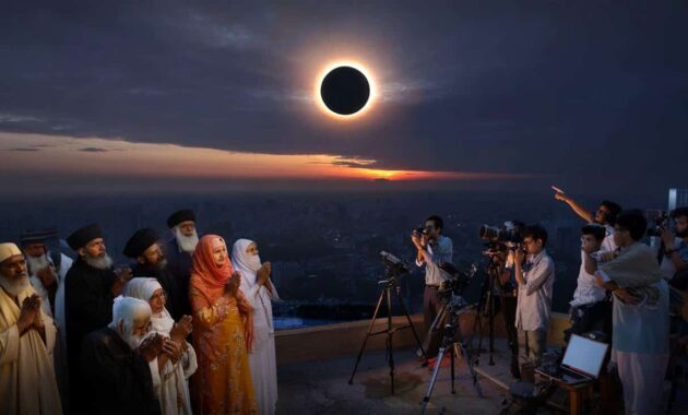 “From a balcony in Lagos to a monastery in Tibet, people will look up at the same vanished sun and tell themselves different stories,” says Dr. Karim Fadel, a solar physicist who grew up in a devout Muslim household. “The real question is whether those stories have to cancel each other out.”