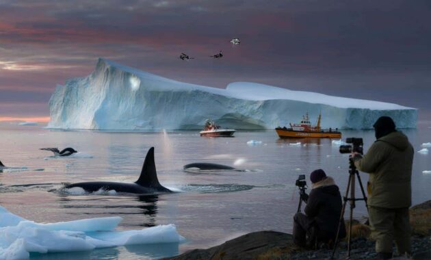 The first orca fin cut the surface like a black blade, only a few meters from the crumbling edge of Greenland’s ice. A Danish coast guard officer filmed in silence as slabs of blue-white ice sheared off and crashed into steel‑gray water. Over his shoulder, a scientist from a European research team murmured something about “historic warming” and “chaotic marine behavior.” Phones came out. Drones buzzed overhead. Within hours, the clip had been spliced, captioned, and blasted across social feeds as proof that the Arctic is collapsing in real time.