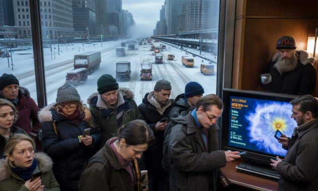 At Chicago’s Union Station, the loudspeakers crackled with yet another delay announcement. People in thick coats hunched over their phones, refreshing weather apps that flashed words like “historic,” “severe,” and “life-threatening.” A mother tried to keep her kids entertained with a pack of cards on the floor, while a businessman cursed under his breath at a cancelled connection. Outside, the wind already had a knife’s edge to it, and the air felt like it was bracing for something bigger.
