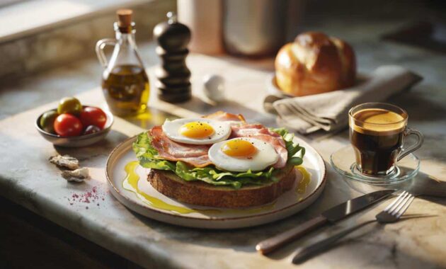 He doesn’t pour milk over cookies. He doesn’t chase a frothy cappuccino with a glazed brioche. Instead, he toasts good bread, fries or scrambles a couple of eggs, adds a few slices of bacon, and slides in lettuce for crunch. It’s quick. It’s savory. It lands like a full meal, not a sugar rush.