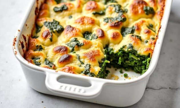 People sensitive to lactose can try a lactose-free milk and choose a naturally lower-lactose aged cheese. Vegans would need to switch to a different approach entirely, using plant milk, vegan margarine and a chickpea flour or tofu base instead of eggs; this changes the character of the dish but keeps the spirit of a baked spinach comfort meal.