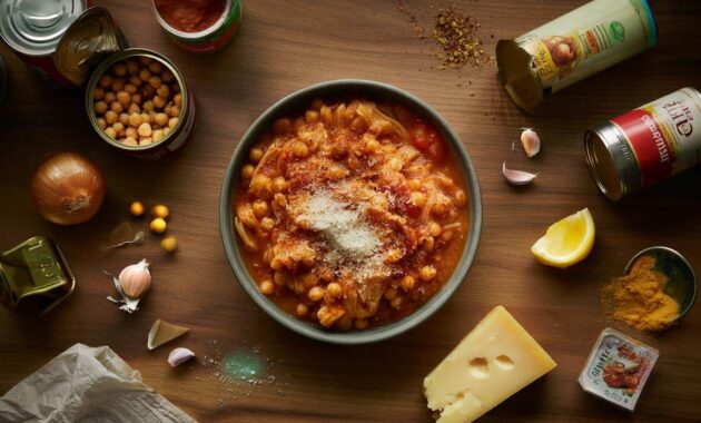 The backbone of that comforting dinner was a basic formula: something starchy, something creamy or saucy, something punchy. Once you see that pattern, your pantry stops looking like chaos and starts looking like options. For me, it was pasta (starch), chickpeas and tomatoes (creamy + saucy), garlic, onion, and chili (punchy).