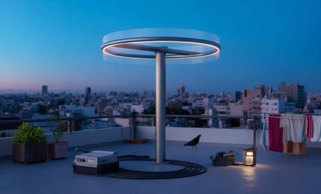 | Silent, bladeless-like design | Ringed column with rotating cylinders and a slow alternator | Fits dense neighborhoods without noise complaints |