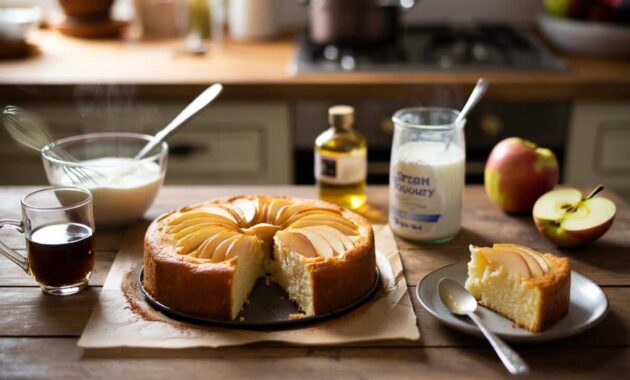 You throw everything into a bowl almost absentmindedly – eggs, sugar, yogurt, oil, flour, baking powder. The apples go in last, sliced quickly, not perfectly. Twenty-five minutes later, you’re eating a warm slice with a spoon, standing in front of the oven door.