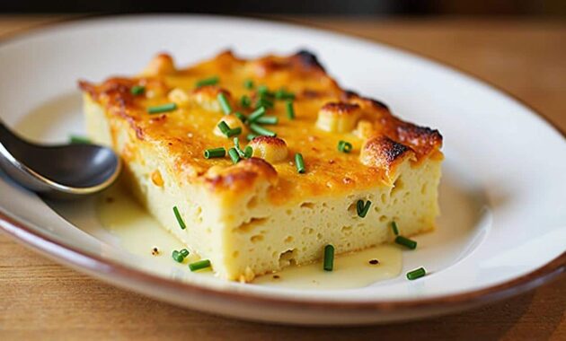 Instead of cream and cheese, the potatoes are slowly baked in stock with onions, garlic and a little butter. The result looks similar to a gratin when it comes out of the oven: golden on top, soft underneath, with layers you can lift by the spoonful. Yet the plate feels lighter, and the flavour leans more towards roasted vegetables and caramelised onions than pure dairy.