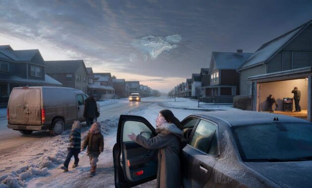 It started with the kind of silence you only notice in winter. No wind, no birdsong, just a grey sky pressed low over the neighborhood, as if it was thinking about something. A woman on the corner struggled with a frozen car door, breath hanging in the air like smoke. The local radio played in the background from a garage, the host sounding oddly serious as he talked about “early February” and “Arctic breakdown scenarios.”
