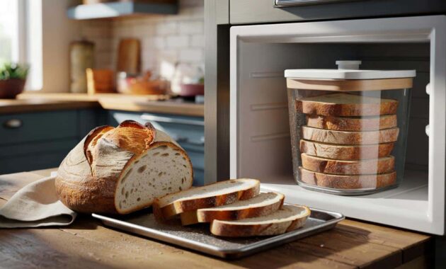 • What if my freezer is very humid or crowded?Use the tray method for a shorter time, around 45–60 minutes, just until slices are firm. Then move them into a tightly closed box so the bread doesn’t absorb stray odors or moisture.