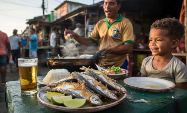 The smell of frying garlic drifts over the plastic tables at a tiny bar in the outskirts of Recife. A cook in a Flamengo T-shirt drops thick, golden fillets into the sizzling oil, while a kid waits nearby, already squeezing lime over an empty plate. “Pescada?” I ask. He laughs. “No, moço. Sardinha. The good one. Cheap and clean.” Around us, customers order it with cold beer and white rice, like it’s the most obvious choice in the world.