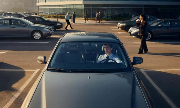 It’s 7:42 a.m. in a crowded office parking lot. A line of cars snakes in, noses diving straight into the