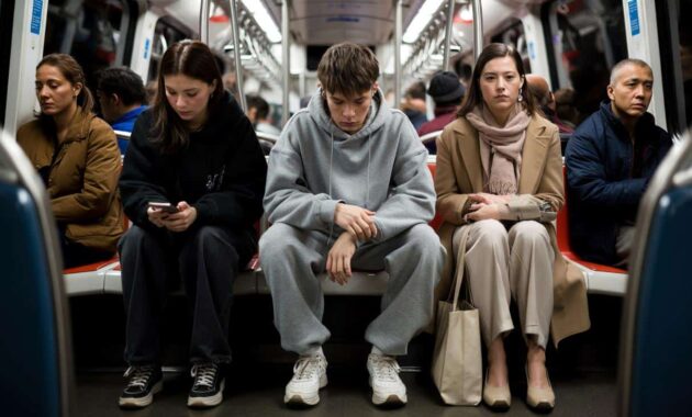 The girl in the metro was almost invisible. Black hoodie, black jeans, black sneakers, head buried in her phone. Next to her, a teenager in an oversized grey sweatshirt hunched over, sleeves pulled down to his knuckles. Across the aisle, an office worker clutched a giant beige tote, beige coat, beige scarf, beige shoes. Three strangers, same silent uniform: colors that swallow rather than shine.