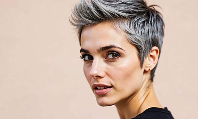 - Short crop or pixie: highlights the contrast between dark and silver strands, adds edge and is easy to style.