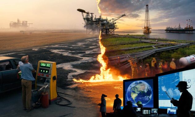 Auf der einen Seite die Charts des Weltklimarats IPCC, die im Konferenzlicht auf Leinwänden flimmern. Auf der anderen Seite Satellitenbilder neuer Bohrinseln, geplante LNG-Terminals, Fracking-Felder, die wachsen wie Städte. Dieses Nebeneinander fühlt sich an wie ein schlecht getimter Split-Screen-Film. Während Wissenschaftler:innen auf Klimakonferenzen vom „verbleibenden CO₂-Budget“ sprechen, feiert die fossile Industrie Rekordgewinne und Staaten kalkulieren Steuereinnahmen daraus.