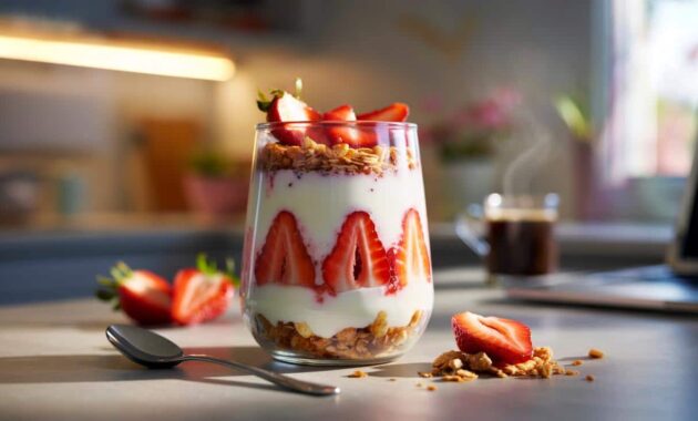 Fast to assemble Layer yogurt, strawberries, and a crunchy element in under five minutes Fits into busy mornings and late-night cravings