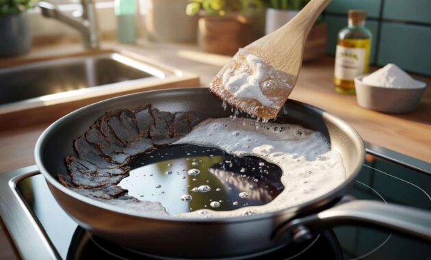 | Acid then alkali | Warm vinegar loosens burnt food, baking soda and bubbles lift it off | Less scrubbing, fewer damaged pans |