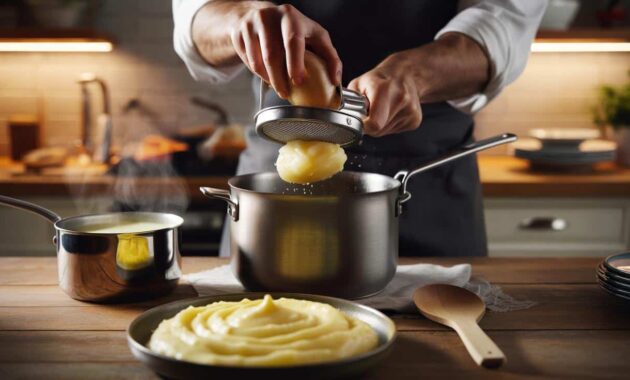 One Paris bistro chef describes his mashed potatoes as “so smooth you could sleep on them.” He doesn’t own a mixer for that job. What he does have is a simple tool: a potato ricer and, sometimes, a fine mesh sieve. He boils floury potatoes, presses them through the ricer while they’re still hot, then patiently works in hot milk and warm butter with a spatula.