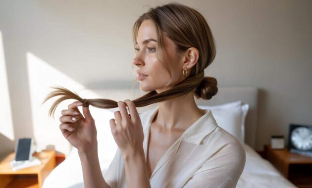 - Use snag-free elastics, avoid pulling too tightly, and switch the exact placement from time to time so the tension isn’t always on the same area. Sleeping with your hair down or in a loose braid gives it a break.