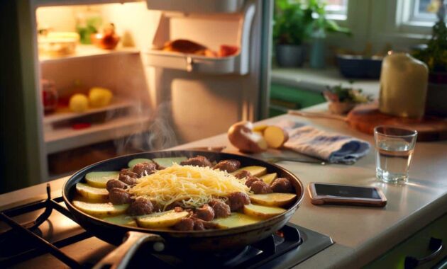 Here’s my personal emergency recipe: a one-pan cheesy sausage and potato skillet.