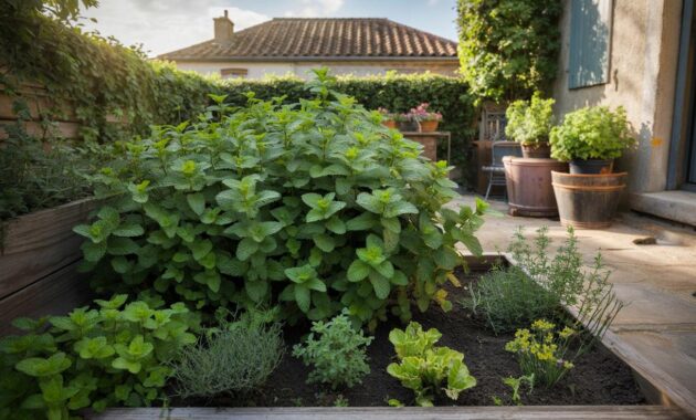 In this confined format, gardeners keep the aromatic leaves close at hand for the kitchen while preventing silent expansion through the beds.