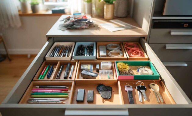 • What if my drawer is very shallow?Use low-profile solutions: cut-down cardboard boxes, thin trays, or even folded pieces of cardboard as dividers. Focus on separating categories horizontally rather than stacking things.