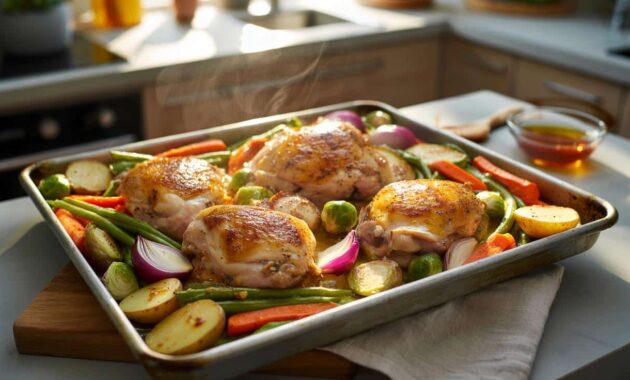 Sheet-pan method Chicken and vegetables roast together on one large tray Less cleanup, less stress, full meal without multitasking