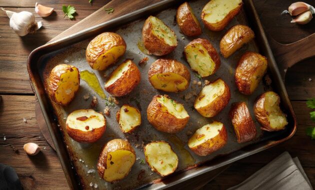 Picture this. You’re coming home late, fridge half empty, energy at 20%. You grab the bag of potatoes you bought “for later,” the garlic that’s starting to sprout, and turn the oven on without much hope. Dinner is survival, not ceremony. You cube the potatoes, boil them for a few minutes because you read that somewhere, shake them in the colander a bit, toss them with oil and garlic, and shove the tray in the oven.