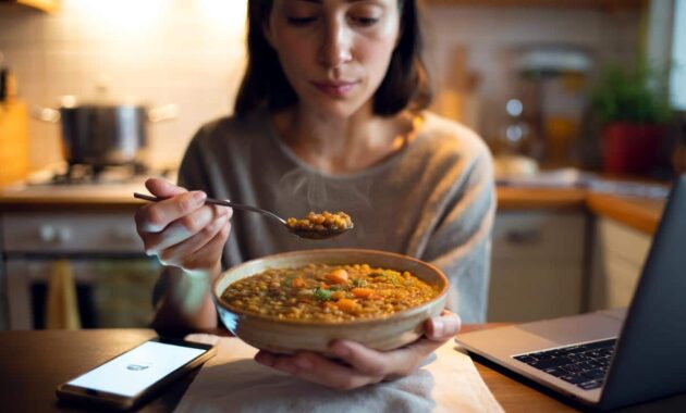Choose spoonable, one-pot meals Soups, stews, curries and creamy pastas naturally cool between bites and encourage slower eating Helps you feel full, calmer, and more satisfied without counting anything