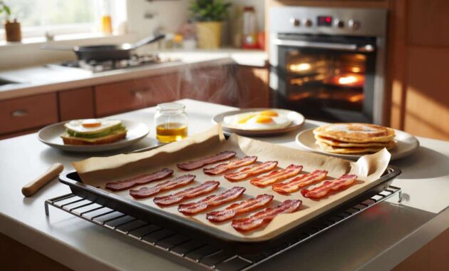 The basic move is almost embarrassingly simple. Set your oven between 375°F and 400°F (190–200°C). Line a rimmed baking sheet with parchment paper or foil, then lay your bacon slices in a single layer so they don’t overlap. Straight lines, no folding. Into the hot oven it goes.